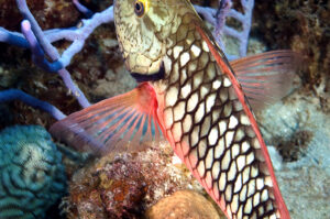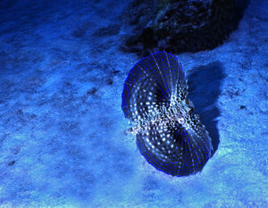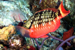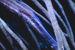 The lesson Armando gave his dive students about photographing fish was about stillness. The more you chase, the more they retreat. The more you settle and breathe slowly, the more the reef forgets you are there, and the closer the small lives come. A juvenile drumfish that flicks its long white banner like a dare. A trumpetfish hanging vertical against a sea whip, pretending to be part of the plant. A flamingo tongue snail drawing its patterns across a purple fan.